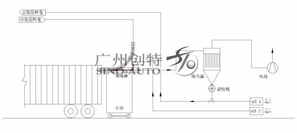 通過風(fēng)機(jī)吹送,把物料送入集裝箱內(nèi),充填能力大于5噸/小時(shí)。